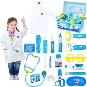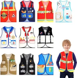 Early role play is easier with costumes! Provide a variety of options for toddlers who don’t want to put on the whole costume (due to preference or tactile defensiveness) with vests, sunglasses, shoes, hats, and smaller accessories. Watch strategies for using this toy in therapy at Stage 8 in podcast #473.