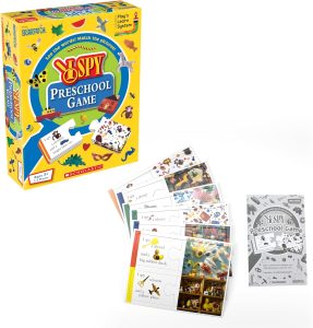 This I Spy Preschool Game contains 1 easy jigsaw piece per game piece, so it’s a great way to help a child learn the concept of pushing the pieces together. Watch strategies for using this toy in therapy at Stage 8 in podcast #473.